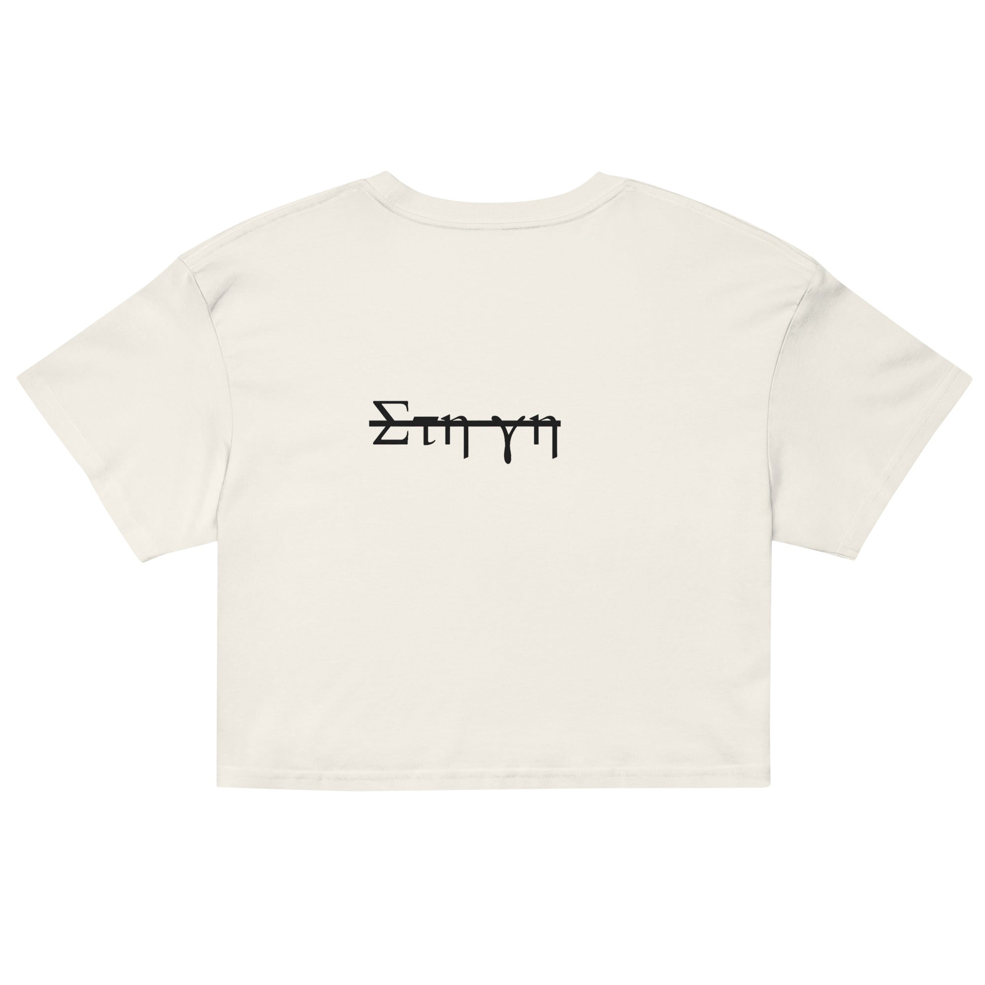 Her flowing draped garb and serene pose evoke the ethos of ancient times. This crop top is made of 100% combed cotton, which makes the shirt extremely soft and more durable than regular cotton shirts. The relaxed fit and dropped shoulders ensure comfortable wear, while the cropped length makes it perfect for spring and summer.